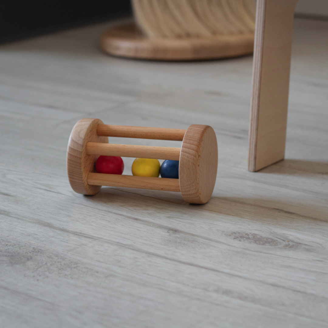 Cilindru cu mingi Montessori din lemn pentru dezvoltarea motricității grosiere, Bavka