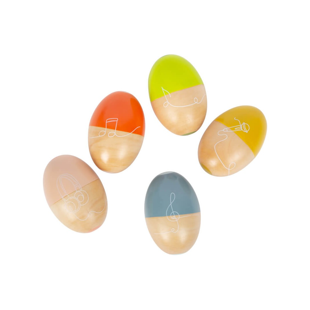 5 ouă muzicale din lemn cu sunete diferite ce pot fi prinse în mâini cu ușurintă, Legler Small Foot - Jucărie cu Activități