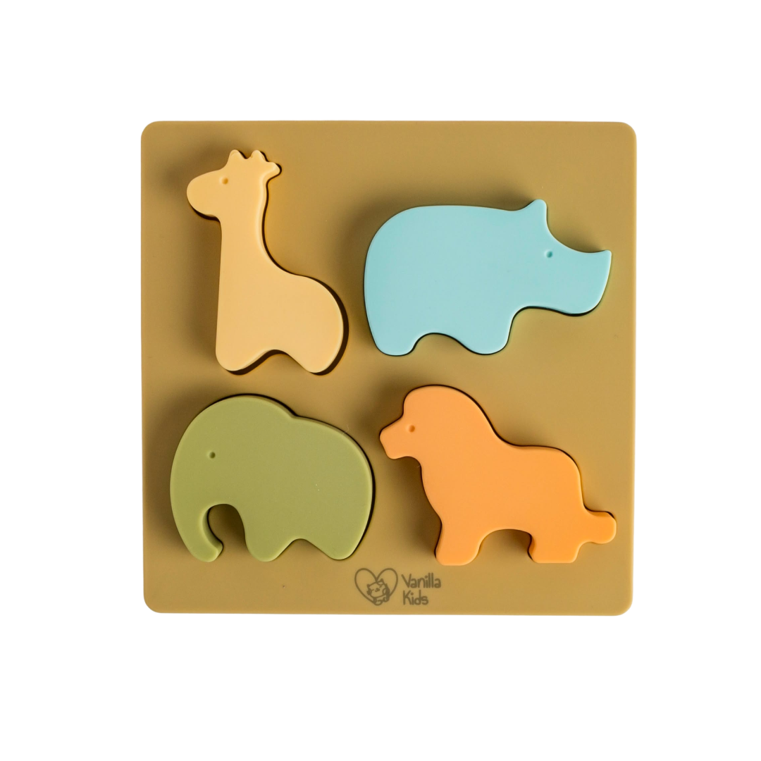 Puzzle din silicon alimentar cu 4 piese în formă de animale, Vanilla Kids