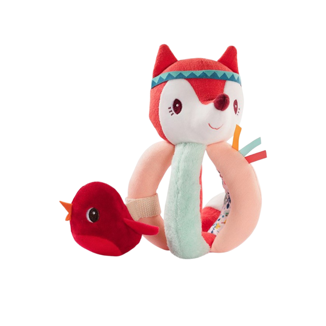 Zornăitoare din textil cu activități. Vulpița Alice cu puișorul său, Lilliputiens - Jucărie Montessori