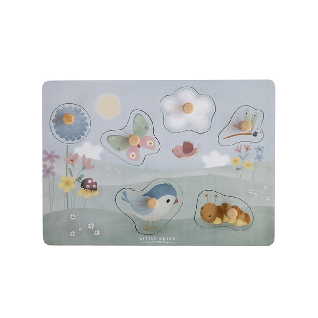 Puzzle senzorial din lemn cu 6 piese, Little Dutch