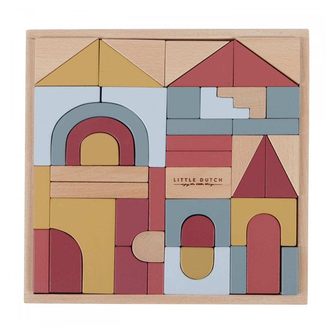 Cuburi din lemn de construit în cutie, Little Dutch - Jucărie Montessori