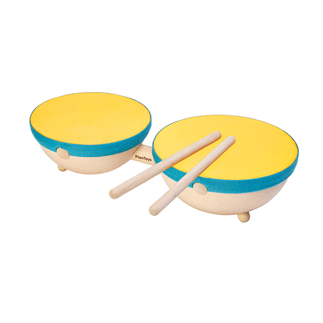Tobă dublă din lemn și cauciuc natural, Plan Toys - Jucărie cu Activități