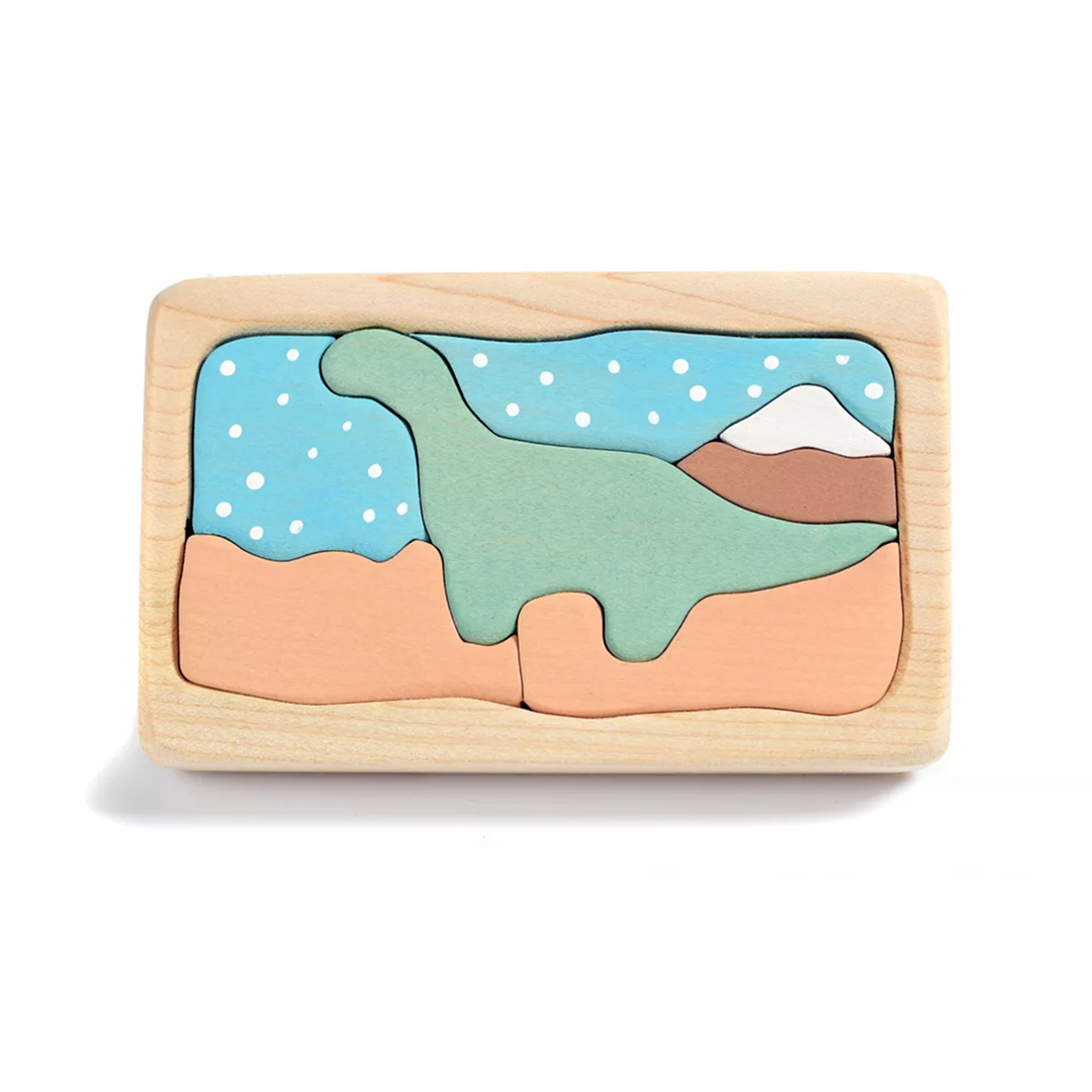 Puzzle din lemn cu dinozaur, Bumbu Toys